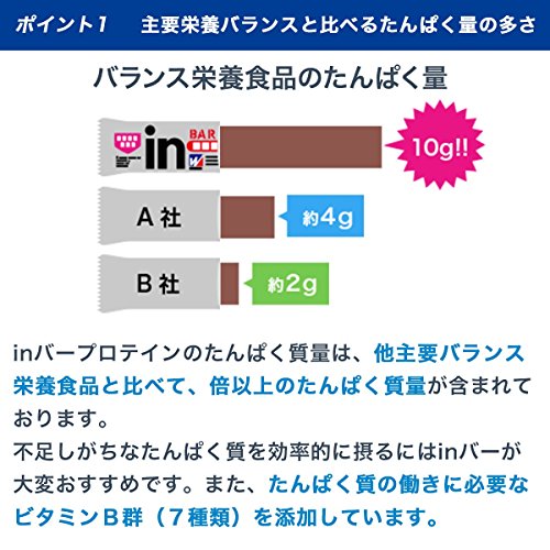 他の栄養バランス食品では実現できない低脂肪のバー食品(1本当り資質0.7g)でありながら、1本でタンパク質を10g摂れます。
