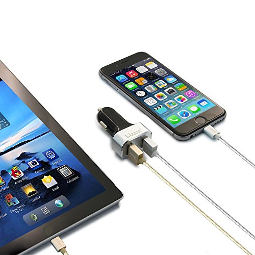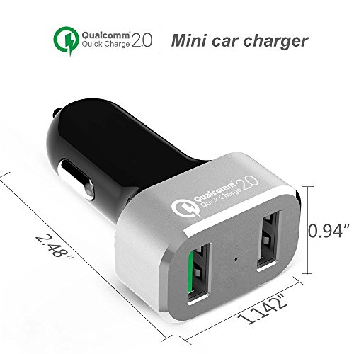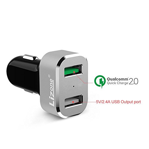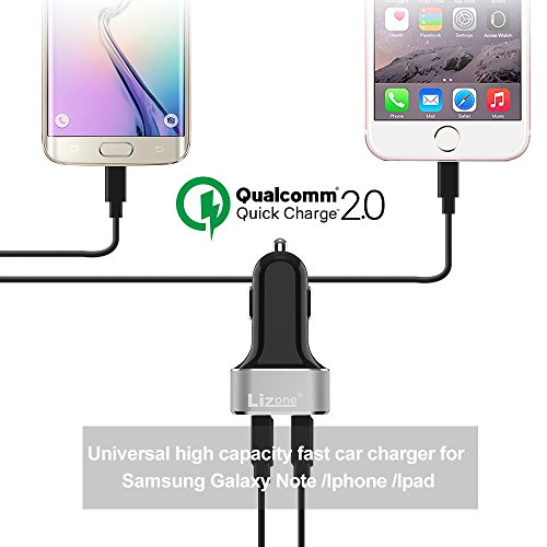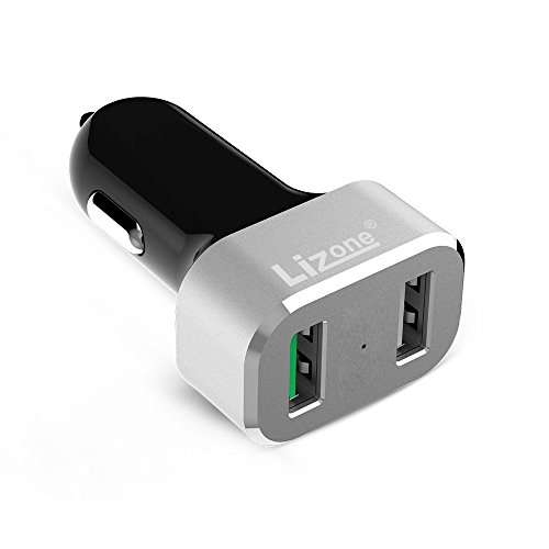 Quick Charge Lizone 2-Port Car Charger With Auto Detect Technology for Samsung Galaxy S7 / S7 Edge ,Galaxy S6/Edge, Nexus 6, iPhone | Qualcomm Certified