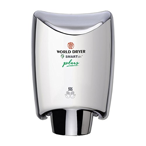 World Dryer K-970P2 Smartdri Plus Hand Dryer, Polished Chrome, Single Port Nozzle for Fastest 10 Second Dry Time, Adjustable Motor, 110-120V