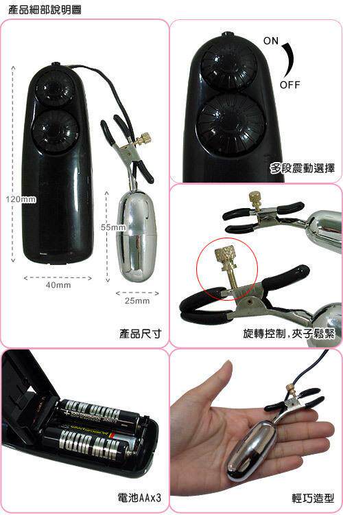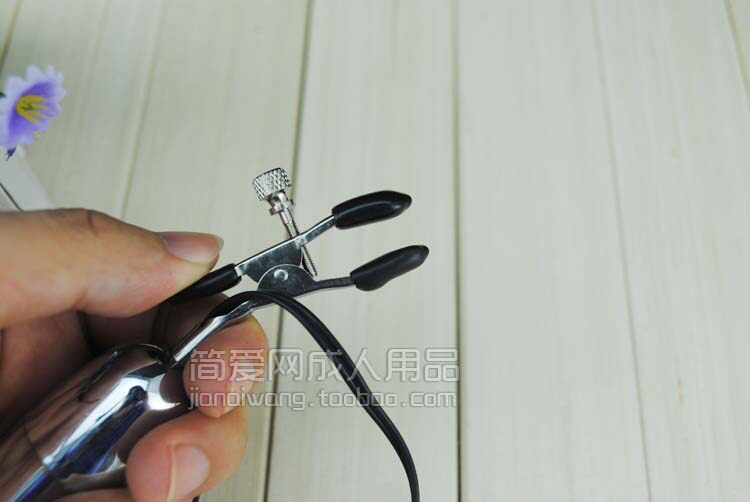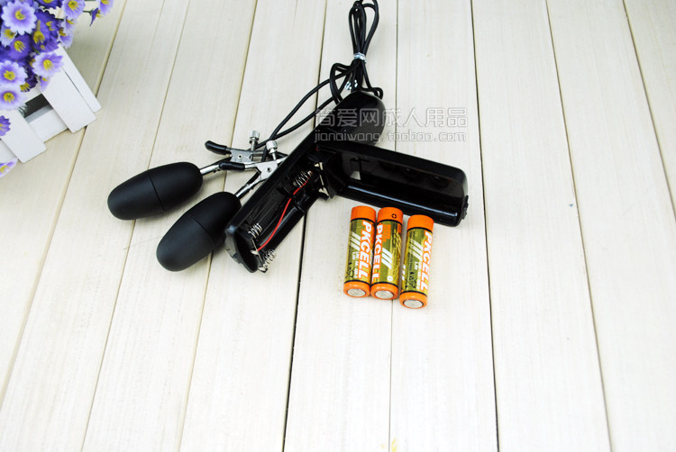 The small milk head clamp 5.5 cm long (2), shock eggs (2) 5 cm long, diameter (thick) 2.5 cm; wire length of 80 cm (2), the controller 9 cm long, 3 cm wide, 2 cm thick