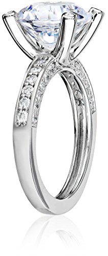 - Title : Platinum Plated Sterling Silver "100 Facets Collection" Solitaire Cubic Zirconia Ring with Channel-Set Cubic Zirconia Accent, Size 6