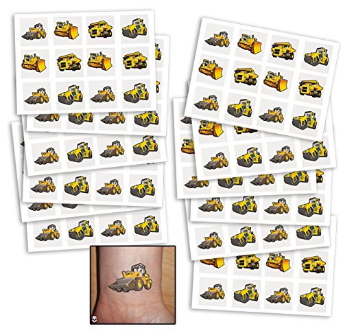 -. Feature : 108 piece party favors bundle includes 12 Nonwoven polyester tote bags. Measures 6" x 6" with 4 1/2" handles. / 12 each of the following; 3" plastic construction pullback vehicles, and 9 1/2" metal construction slap bracelets. / 72 temporary (non-toxic) construction themed tattoos. / Bonus our uniquely designed special " IT'S MY BIRTHDAY" Construction pin for the birthday child included!