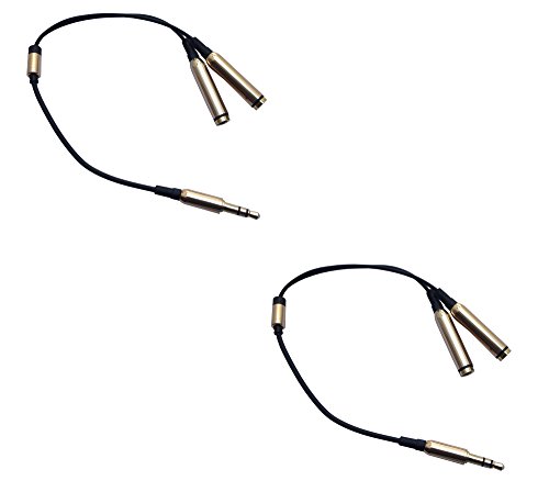 (2 Pack) New Universal 3.5mm Jack 1 Male to 2 Female Stereo Earphone Headphone Y Splitter Audio Adapter Extension Cable - Golden/Black