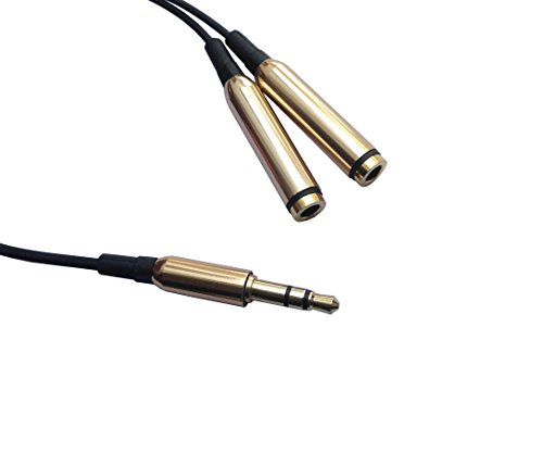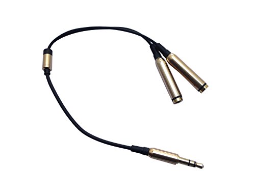 Converts single 3.5 mm stereo jack to two 3.5 mm stereo jacks to connect two stereo headphones to one audio source device