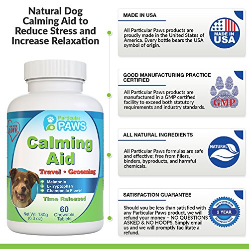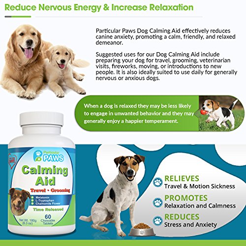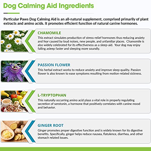 STRESS AND ANXIETY BUSTER: Dogs are creatures of routine and can easily become stressed out with a simple change to their daily routine. Help your dog stay calm and comfortable during times of stress with our all-natural Dog Calming Aid. Whether you are making a new addition to your family, introducing a new pet, expecting company to your home, or have had a change in your work schedule, Particular Paws Dog Calming Aid is here to help.