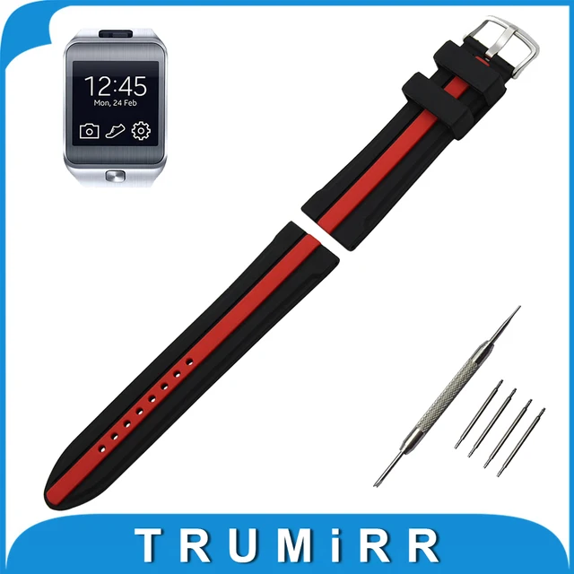 22 미리메터 실리콘 고무 시계 밴드 samsung gear 2 r380/r381/R382 스트랩 손목 벨트 팔찌 블랙 레드 + 봄 바 + 도구