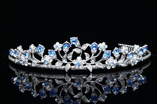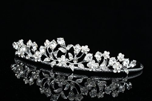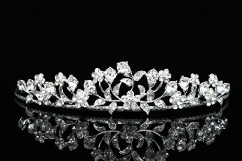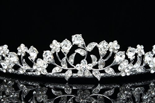 Floral Leaf Bridal Wedding Tiara Crown - Clear Crystals Silver Plating T645