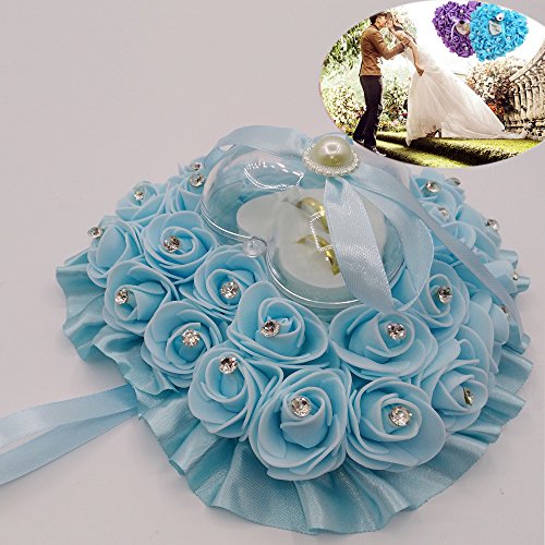 - It's only one ring bearer pillow, it's very beautufil with the decoration, color is blue pillow, with high-grade environmentally friendly foam, do not fade, no smell, senior satin hand-decorated, dirt, durable, reusable.
