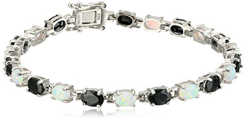 -. Title : Sterling Silver Oval Cut Created Opal and Gemstone Tennis Bracelet