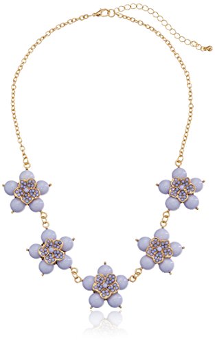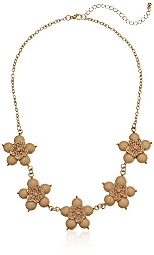 -. Title : Small Flower Cabochon Gold-Tone Statement Necklace, 18.5" + 3" Extender