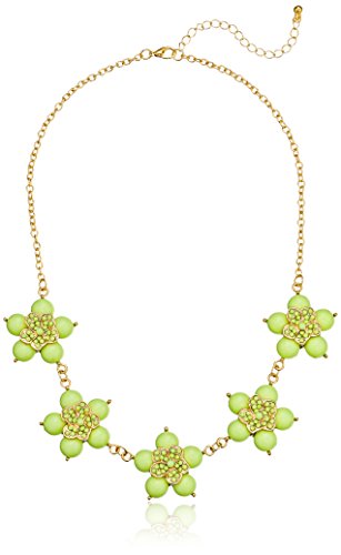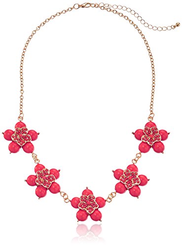 -. Feature : Gold-tone necklace featuring five flower stations comP.R.Ised of resin beads / Lobster claw clasp / Imported
