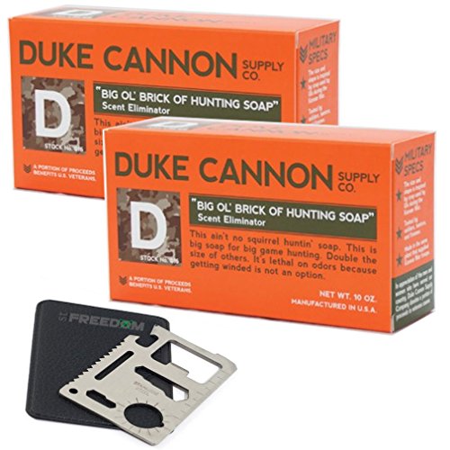 -. Feature : Soap set includes 2 bars of Duke Cannon Big 'Ol Brick of Hunting Soap and a 11-function multi-tool by StFreedom / A hefty 10 oz (each bar) is made of a unique formula that captures odors, smothers them, and prevents their release. / Suds you up well, gets you clean and leaves no odor behind. / Credit card size multi-tool has 11 functions, including one to open your beer bottle.