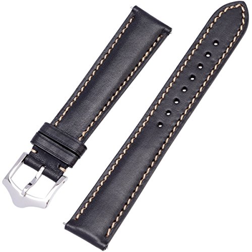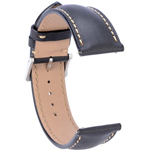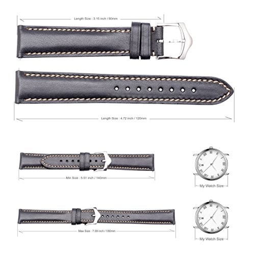 -. Feature : 100% Genuine cowhide watch strap use high-quality calf leather,fine-pored and particularly tight grain the strap perfect leather texture and edge lacquered,particularly strong and durable. This bracelet with available in black or gold brown with contrast stitching or black or Gold Brown with tone on tone seam, The ensures a harmonious interplay of sturdy design and timeless,Its classic character with a touch of sportiness makes this bracelet a popular accessory.wearing very comfortable / Length Selection:Band Length: L-[120mm(4.72in)]/[80mm(3.15in)(without buckle)],the length of the strap is connected the shortest is 140mm/5.51 inches, the longest is 180mm/7.09inches plus the size of my watch is equal to the total length.Adjustable Length: you can according to the size of their wrist in the min length and max length between the adjustment of the length of the strap (hole distance of 5mm),please refer to picture 6 for detailed size chart / Width Selection:Compatible with any traditional or smart watch that uses 18mm, 20mm or 22mm sP.R.Ing bars,for example [for Panerai Watch],[for Bell & Ross Watches],[for Tag Heuer Watches],[for Oris Watches] [for Seiko Watch],[for Timex Watch],[for FOSSIL Watch],[for Casio Watch],[for Watch],[for CITIZEN Watch],[for Tissot Watch],[for Watch],[for OMEGA Watch],[for Longines Watch],[for JAEGER-LeCoultre Watch],[for PIAGET Watch],[for Swiss Army Watch],[for Smart Watch] etc / Easy to Install: No tools required this replacement watch strap features a quick release strap that allows you to switch watchbands in one easy step with only your finger. Simply slide the sP.R.Ing bar into place - no need for additional hardware.It fast and simple to install and change your band in seconds / We guarantee a 100% refund if you are not satisfied with the products you received within 30 days and we provide 12 month warranty, If anything is wrong - please feel free to contact us - we will make it right