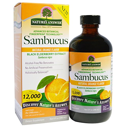Studio : Nature's Answer Publisher : Nature's Answer Binding : Health and Beauty Product Description Since 1972 Discover Nature's Answer and Trust the Difference... New Delicious Flavor Advanced Botanical Fingerprint Technology Sambucus Nigra Alcohol Free/No Benzoates No Artificial Preservatives Holistically Balanced Super Concentrated 12,000 mg Per Serving Vegetarian Vegan Gluten-Free Dietary Supplement Cruelty Free Not Tested on Animals Kosher Parve Get the full benefit of Natural Flavor Orange Sambucus in so many delicious ways! Dose ???Brew ???Infuse Advanced Botanical Fingerprint Technology The Genius of Mother Nature in Every Bottle - Just as She Intended "The true value of a plant lies deep within its natural holistic balance." Frank D'Amelio, Sr., Founder, Nature's Answer With one of the most comprehensive herbariums in the world, Nature's Answer has identified Mother Nature's unique botanical fingerprint on over 800 plant reference standards. Utilizing Advanced Botanical Fingerprint Technology, these authenticated samples each serve as the standard by which all incoming raw materials are judged. Using carefully-controlled extraction techniques, we capture the holistic balance of each herb and the value is passed on to you, the consumer, who can be assured that the product in your hand is authentic, safe, effective, holistically balanced, and of course...Nature's Answers. The True Nature of Our Standards go way beyond the herb... A Trusted, Ethical, Family-Owned and Operated Business Since 1972 Our Facility is cGMP Certified, Organic and Kosher Certified Over 100 Quality Control Checkpoints in Every Bottle Vertically Integrated: Allows for the Highest Quality at the Best Possible Price Proudly Based in the USA...Responsibly and with Love 0