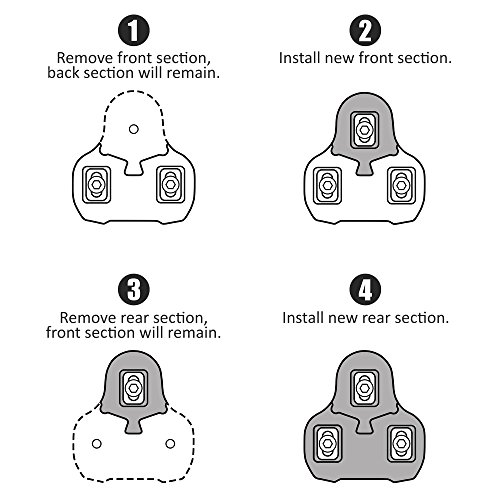 - To maintain the exact cleat position when changing the clip-out angle rear section, or replacing cleats due to wear, remove and replace the rear section first then change the front section. This will ensure the replacement is located in the same position as the replaced cleat.