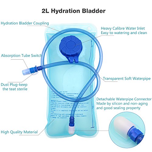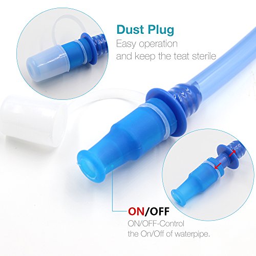 -. Feature : Our hydration bladder manufactured of microban anti-bacteria material. Patented Glass AS technology makes it a high smooth interior surface. The smoothness of the liner prevents the germ and the lime from adhension, which promotes health. / It's simple to drink, pull the rubber mouth piece out and the water comes right out. Push rubber mouth piece back to close, You don't have to bite anything! Our water bladders passed pneumatic pressure test, 24 hour swing test and 24 hour vibration test. It is completely pressure-tolerant and leak proof for carefree biking, running, hiking and other outdoor adventures! / Durable and soft anti-microbial mouthpiece for wholesome and effortless sipping. Easy to bite with 90-degree turn mouthpiece. Easily accessible shutoff valve. / Premium quality neoprene tube cover resists temperature changes in hot and cold weathers. THERMAL TAPE at each end prevents insulation from sliding and wearing off. QUICK-RELEASE TUBE can be detached for easy storing. AUTO-SHUTOFF VALVE prevents leaking when tube is detached. / Best water reservoir SGS Verification Military Class Quality, 100% odorless, tasteless, FDA Approved, BPA- Free material.