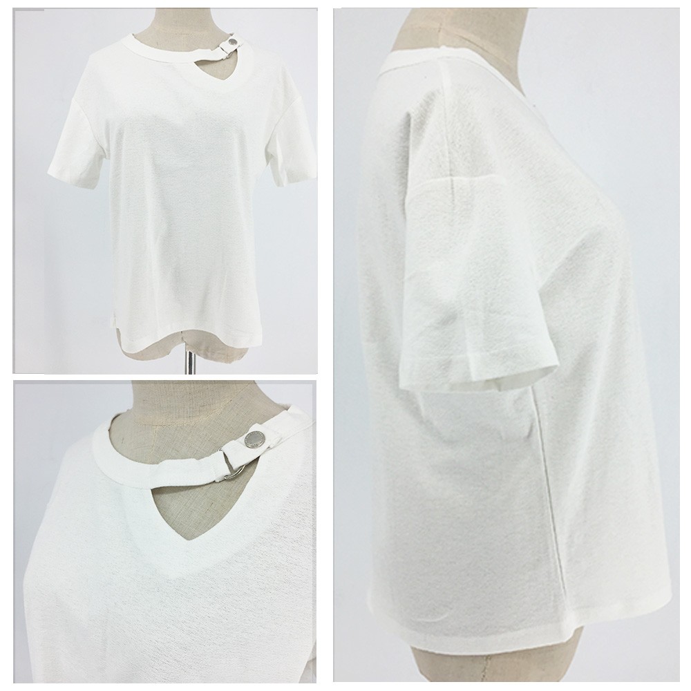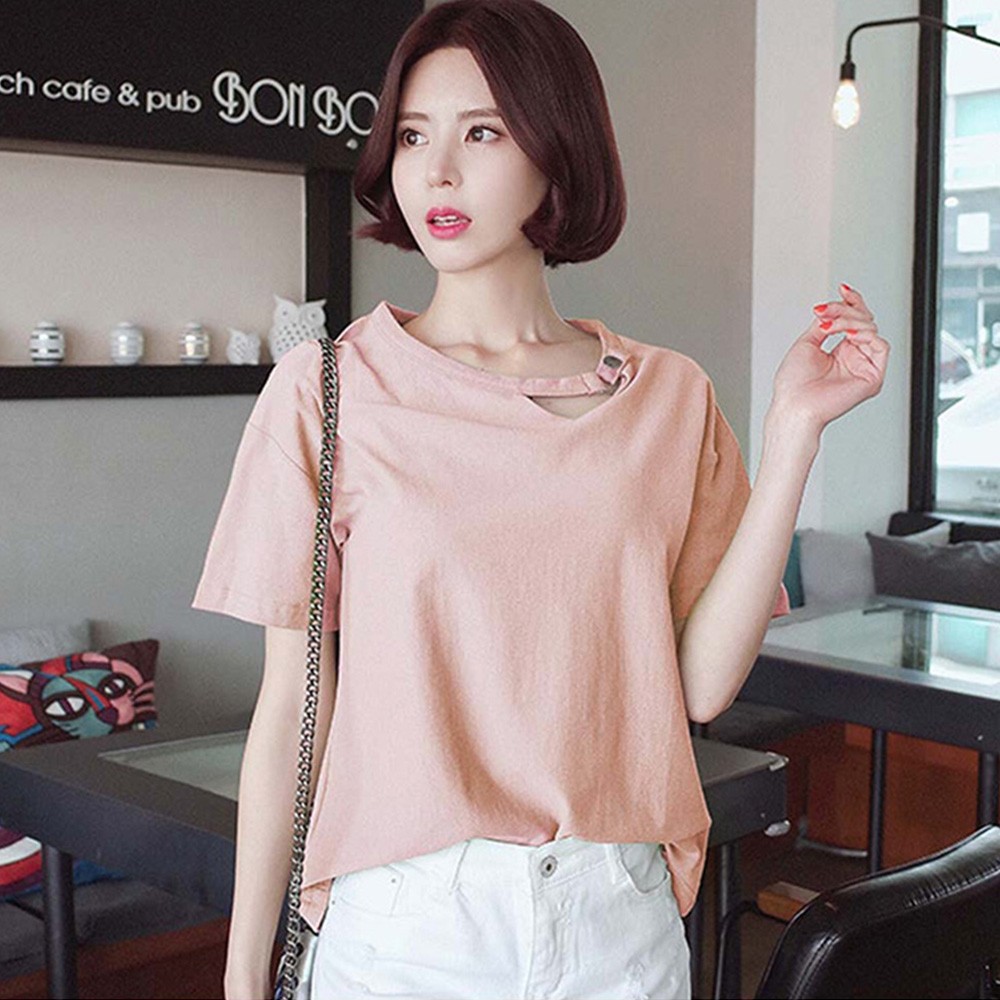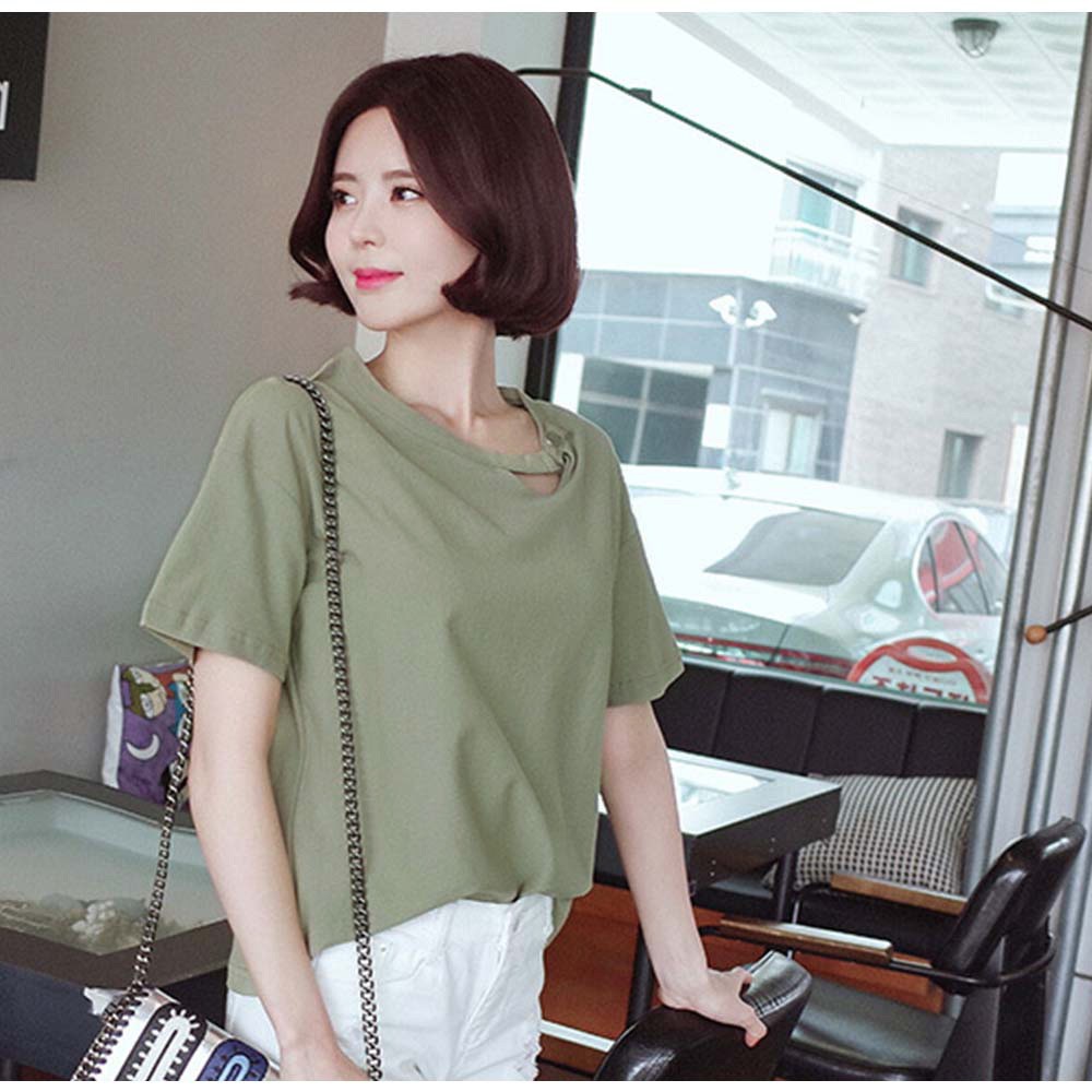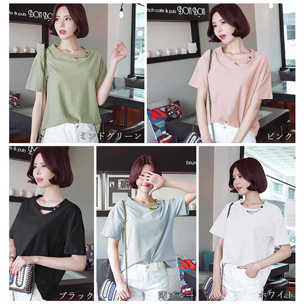 変形デザインの襟元が可愛いドロップショルダーレディースカットソー