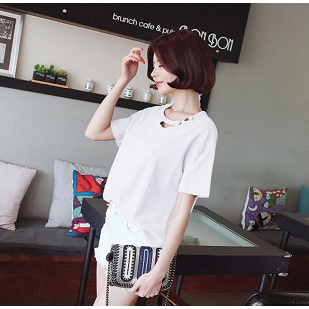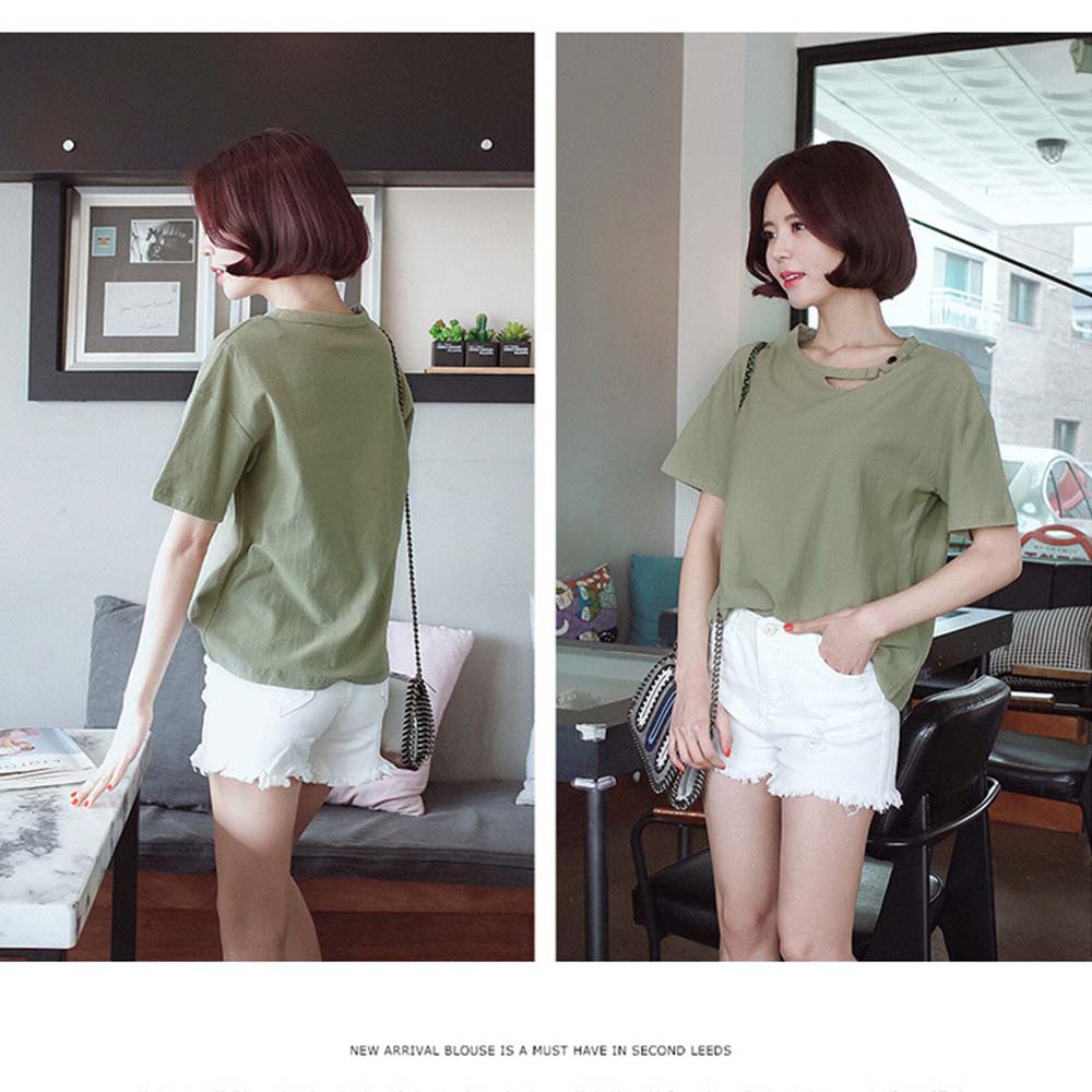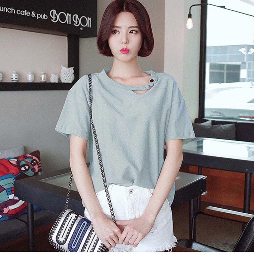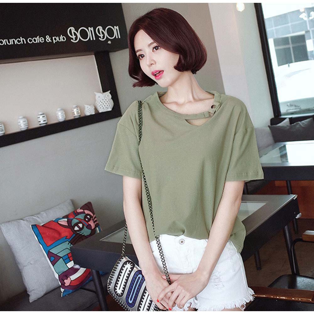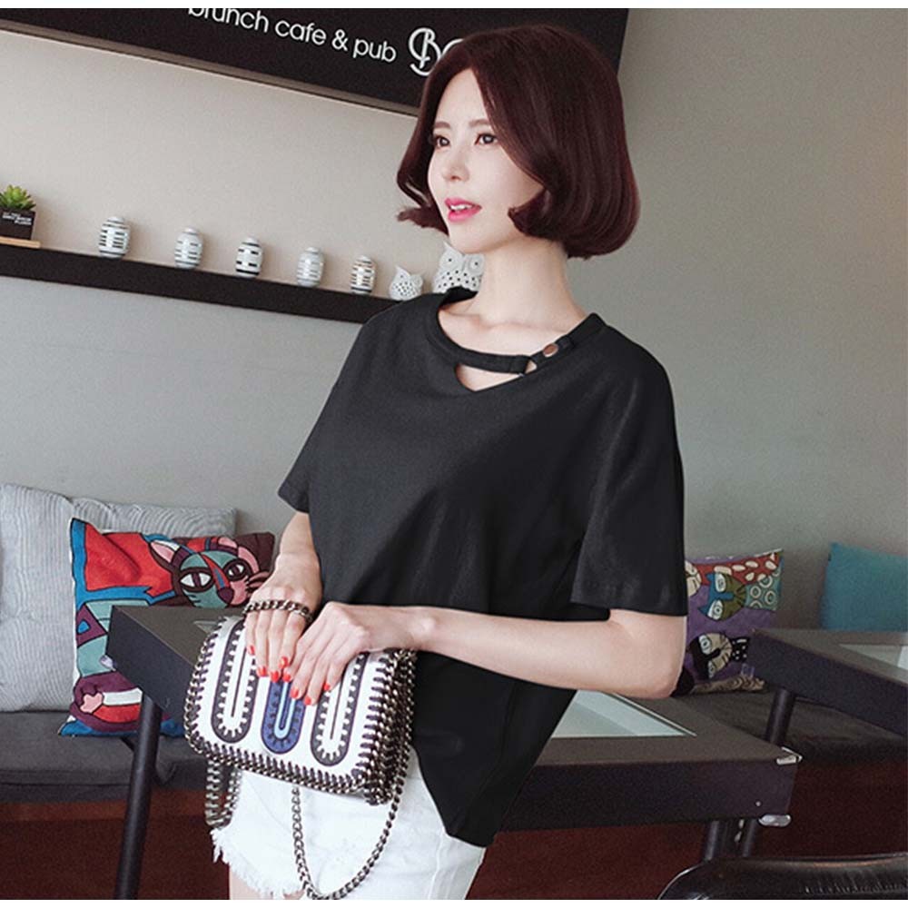 変形デザインの襟元が可愛いドロップショルダーレディースカットソー