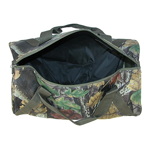 Studio : Liberty Bags Publisher : Liberty Bags Product Description This sturdy camouflage duffel bag is great for a week end trip or a trip to the gym. The roomy interior is secured by a full-length zipper. It also features a zippered exterior side pocket and removable shoulder straps. 0