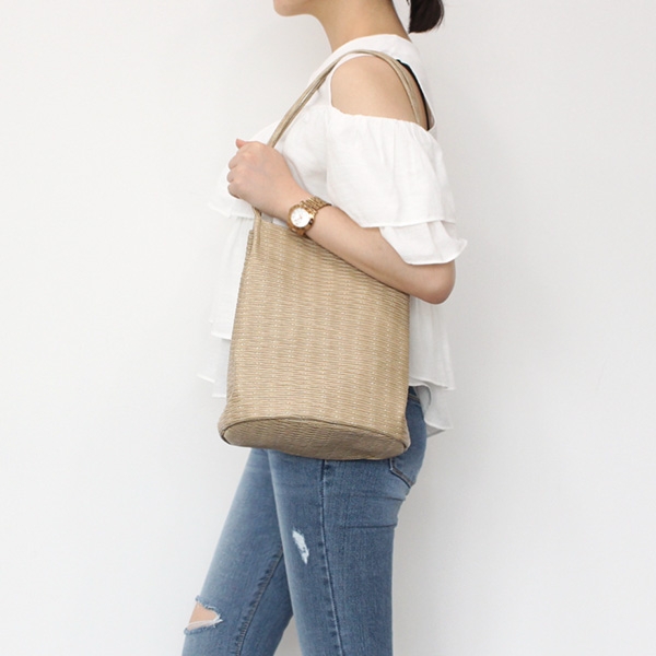 |  여름에 더욱 시원해보이는 라탄 소재의 숄더백 소개할게요! 가벼운 무게감과 시원해보이는 소재감으로 지금 날씨에 데일리룩으로 사용하기 딱이에요. 자석버튼으로 간편하게 오픈클로징이 가능하며 넉넉한 크기감으로 수납력도 우수해요. 안쪽에는 미니 지퍼포켓을 더해 실용성까지 챙겨주었어요. 스트랩 길이도 적당해 토트백, 숄더백으로 편안하게 착용이 가능한 비스코스 아이템이랍니다. 상세페이지 확인 후 굿초이스 해주세요! *모델 착용 컬러 - 베이지(BEIGE) / 브라운(BROWN)         | COLOR | 베이지 / 브라운 | | 제품 색상은 모니터에 따라 실제 색상과 차이가 있을 수 있습니다. | | | | FABRIC | 합성피혁 | | | | PRODUCTION | 제조국 / 한국 | | 품질보증기준 / 소비자분쟁 해결기준에 따름 | | A/S 책임자 및 고객센터 / 감성가방 | | | | SIZE INFO | 사이즈는 측정 방법에 따라 1~2cm의 차이가 있을 수 있습니다. | | 스트랩 길이는 연결 고리를 제외한 길이이며, 최대 길이입니다. | | (단위:cm, g) | | 가로 길이 | 세로 길이 | 너비 | 손잡이 높이 | 스트랩 길이 | 무게 | | 24 | 29 | 17 | 28 | - | 400 | |