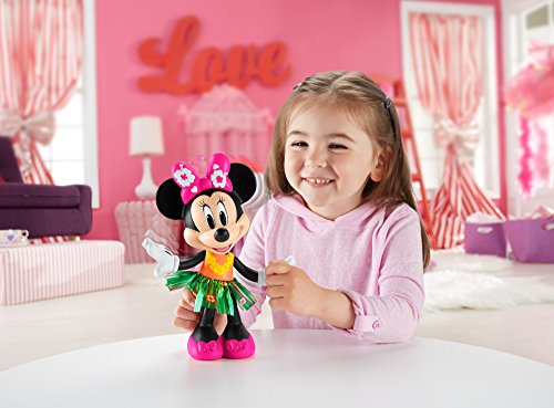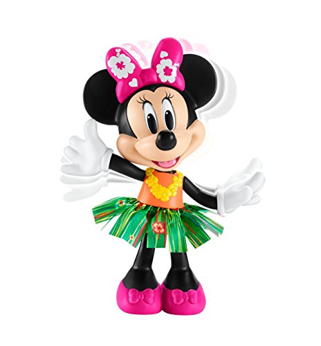 -. Feature : 10-inch (25,4cm) poseable Minnie Mouse doll / Head, arms, and eyes move / Hawaiian grass skirt, lei, and flowers on bow