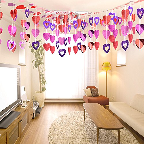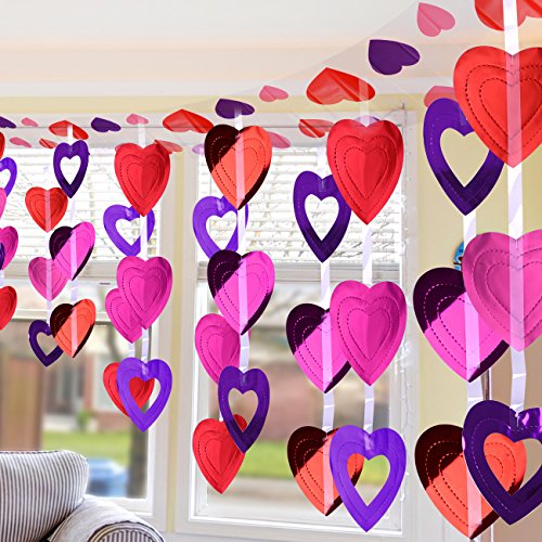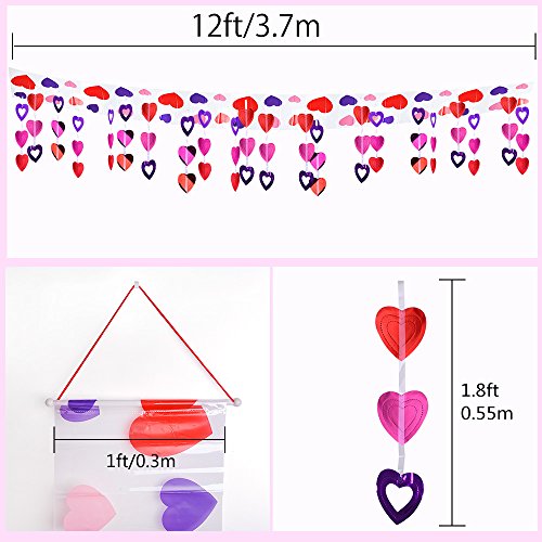KUUQA 12 Feet Valentine's Ceiling Decoration Heart Shape Hanging Supplies Valentine's Day Room Decoration Favour (1 Pack)