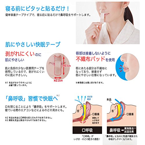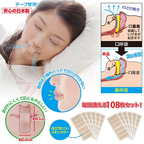 Close your mouth at bedtime, with a mouse tape to encourage nose breathing is the correct breathing technique, the principal of the respiratory tract as well as people annoying, you have to increase the effect on snoring imposing a burden on the heart. Snoring reduce goods, nose respiratory distress, just stick mouth closed tape, nose breathing hush tape, to the mouth breathing prevention tape mouth, and prepares the person originally of breathing (nasal breathing). Is not painful when peeled off, is a pressure-sensitive adhesive-friendly silicon type to skin. Or soggy even if the 36 days (108 sheets) for a long time pasting of large capacity, we use a hard or rough material. · In addition, not only gentle to the skin, it also combines once the adhesive force that does not peel off until the morning is going to bed and paste it into the mouth. · Moderate stretch There is also, peeling difficult, there is no discomfort when worn so also to accommodate the movement of the mouth of the muscle. - smell without any, nose, not worried at all be attached around the mouth. And customs of human original nose breathing in three weeks continue it attaches to the body naturally.