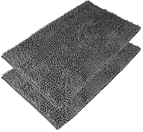 Anti-Skid Microfiber Shag Bath Mat - Pack of 2 - Grey Color – Mildew Resistant – Machine Washable - by Utopia Towels