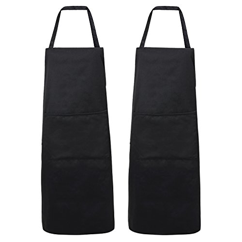 Nuovoware Aprons, [2PACK] Fashionable Unisex Chef Restaurant Kitchen Apron with Neck Strap, Long Waist Ties and Spacious Pocket, Perfect for Cooking, Baking and Housework, Machine Washable, Black