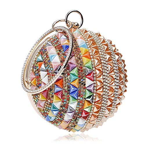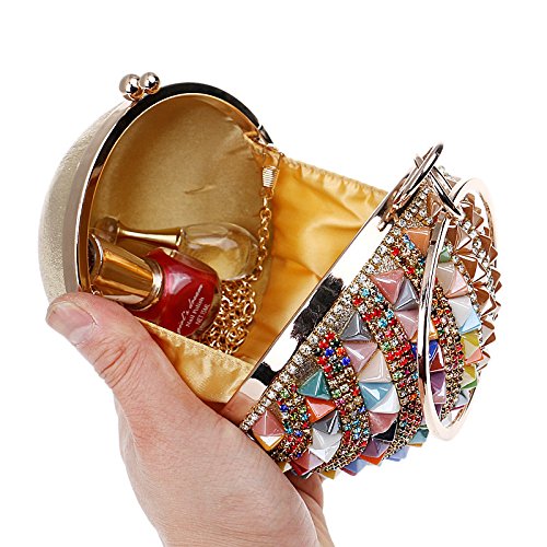 -. Title : Woman Round Ball Clutch Handbag Rhinestone Ring Handle Purse Evening Bag