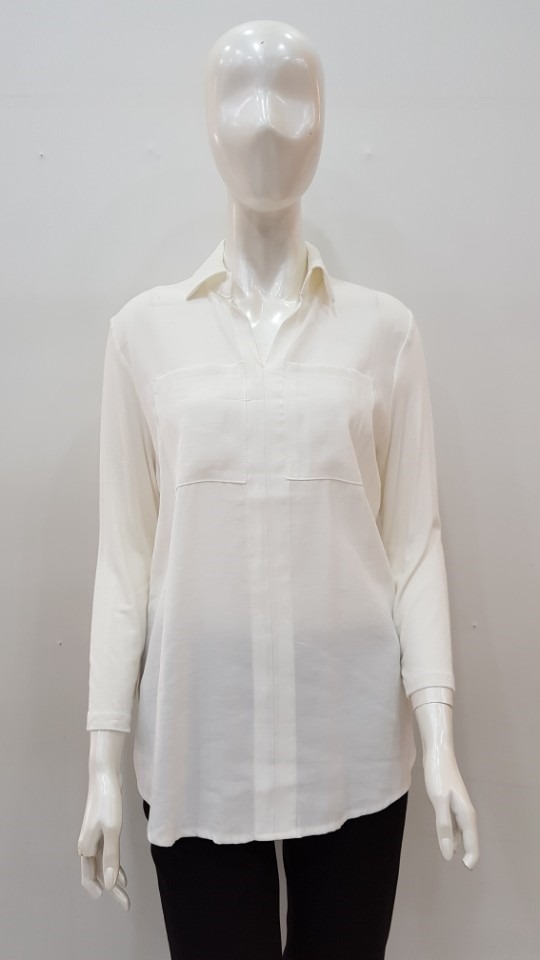 등판저지배색 셔츠형 블라우스-JA6U4-WRB511