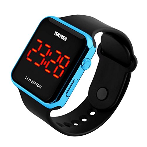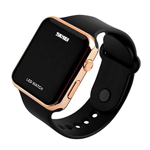 -. Feature : Classic black background with simple LED digital display, Minimalist and fashion, special for teenagers, students or other stylish persons / Concise LED digital time display, when you want to watch the time, you need to press the button. then you can easy to read and get great night vision, convenient to check time at night, this designs to save power. Also, Remember the watch will change to sleep mode automatically 5 seconds without operation to save energy while you don¡¯t watch the time / Soft and durable rubber band, bend freely, breathable and wicking, protect your wrist well, no smell, offers you softer and more comfortable wearing experience / 3ATM water resistant (waterproof 30M). Please don't press button under water. / Come with a GIFT BOX, cool gift for friends and family members, fits many kinds of outdoor activities, running, hiking, climbing or other leisure occasions.