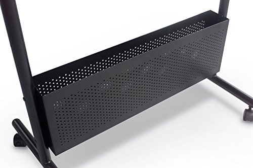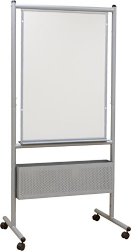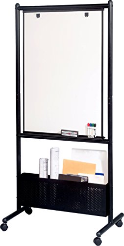 The Nest Easel is designed to nest together for ease of transport and compact storage. Available with silver or black powder-coated steel frame, and a double-sided dry erase markerboard surface in either magnetic porcelain steel, or Dura- Rite HPL. Surface measures 40 3/4"H x 28 3/4"W. Easel features accessory trays and flip chart hooks on each side, as well as a perforated storage box that can be adjusted in height to accommodate a variety of items. Unit sets at 65" or 72" high. Base includes 2" locking casters.Feature