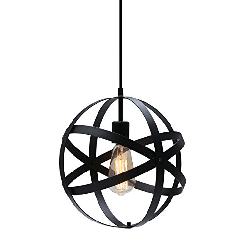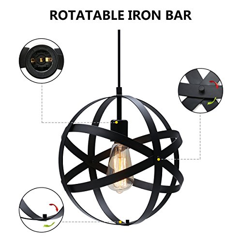 Metal Spherical Pendant Light, KINGSO UL Listed Antique Cage Flush Mount Chandelier Adjustable Black Ceiling Hanging Lighting Fixture E26 Bulb Holder Sphere Bakelite For Porch Bedroom Kitchen(No Bulb)