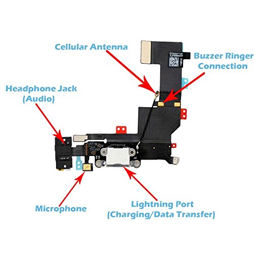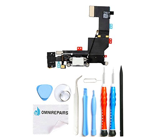 Omnirepairs-For White iPhone 5s Charging USB Lightning Port Flex Cable + Microphone + Headphone Audio Jack Replacement Assembly + Tools
