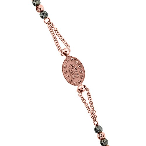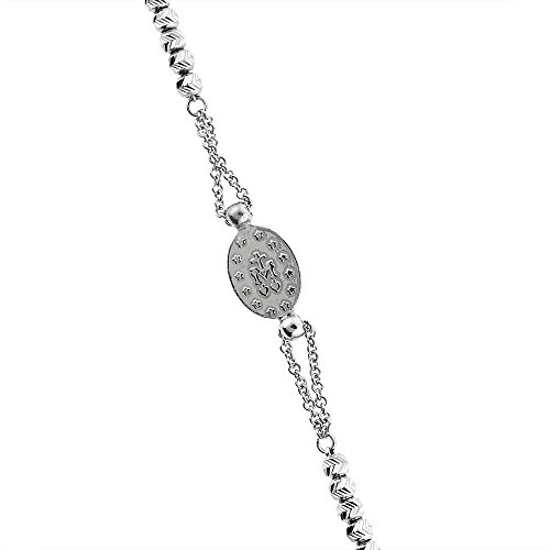 -. Title : Sterling Silver Miraculous Medal Bracelet Virgin Mary Diamond Cut Beads Italy, 7 - 8 inch