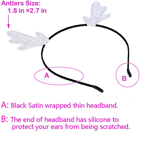 Puffy glitter antlers and cat ears on a satin ribbon-wrapped thin headband.Absolutely loved by the Holiday Party and Christmas Gifts