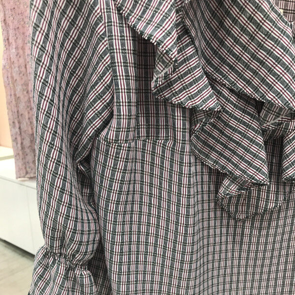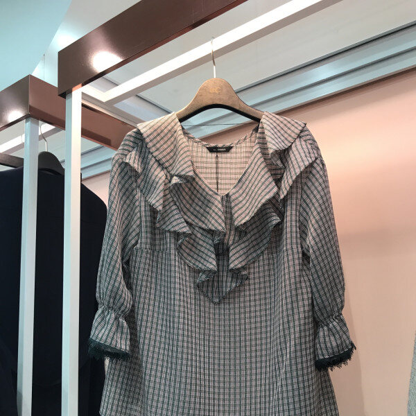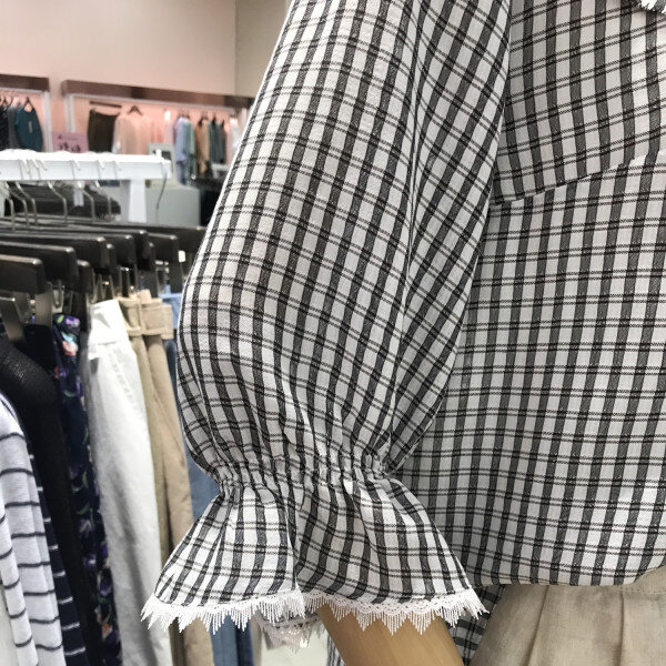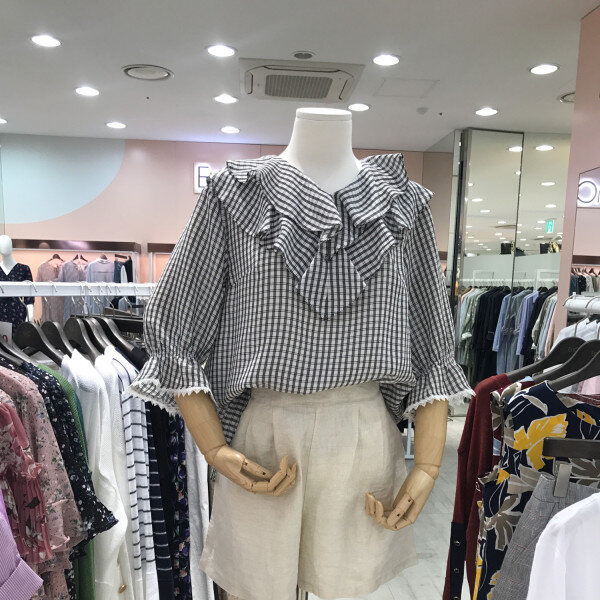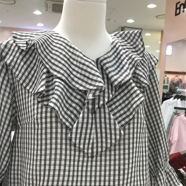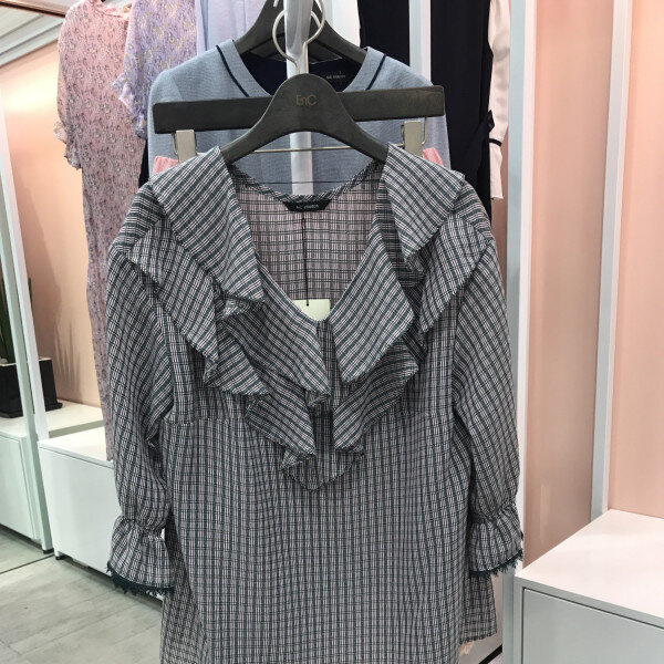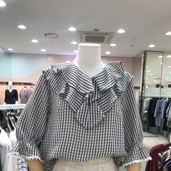 EnC 신상 블라우스입니다:잔잔한 체크에 러블리한 프릴 고급스러운 색깔 배합으로 반바지,스커트,청바지,슬랙스등 어느 하의와도 매칭이 잘어우러지는 아이템입니다::초가을 트렌치코트 안에 매칭하시기도 아주 굿입니다~::가볍고 디자인,색감이 넘 예뻐요!