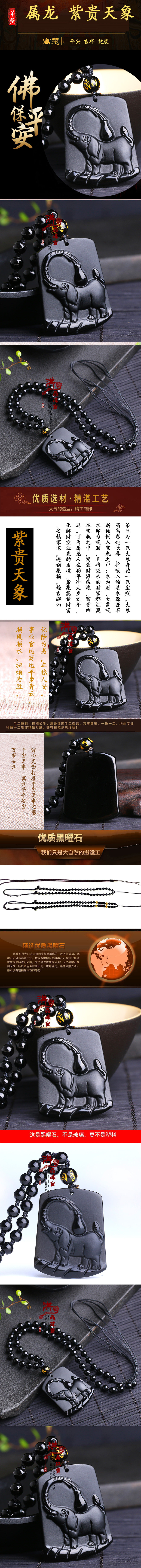 开光属龙化太岁吉祥物十二生肖紫贵天象黑曜石吊坠平安项坠