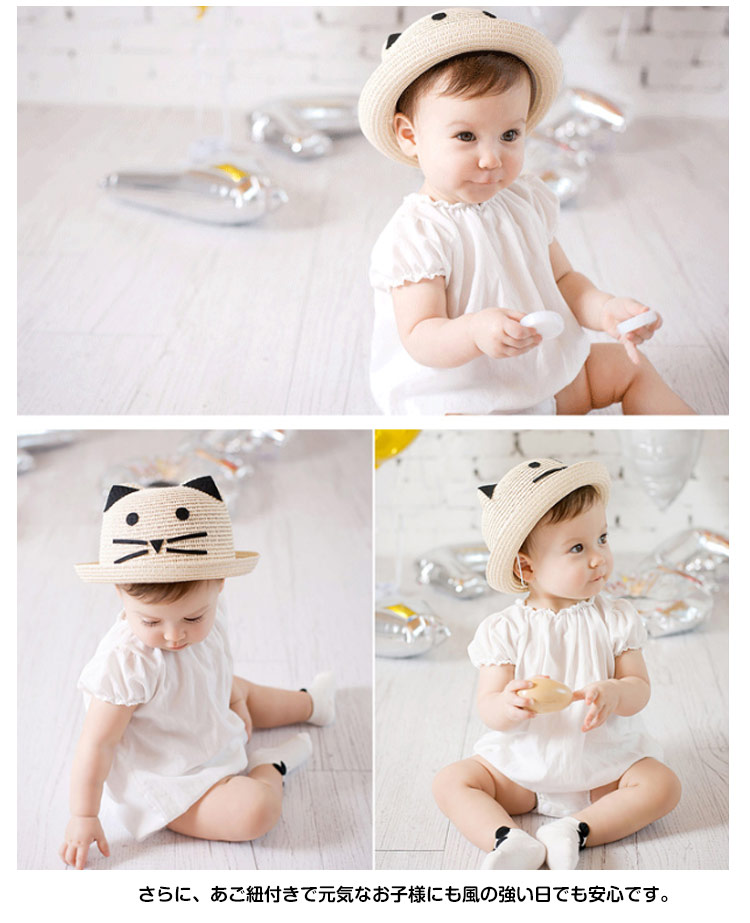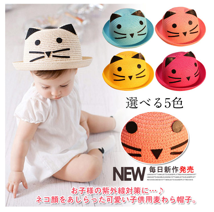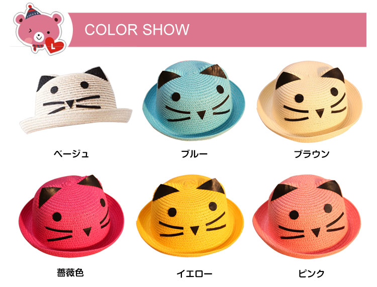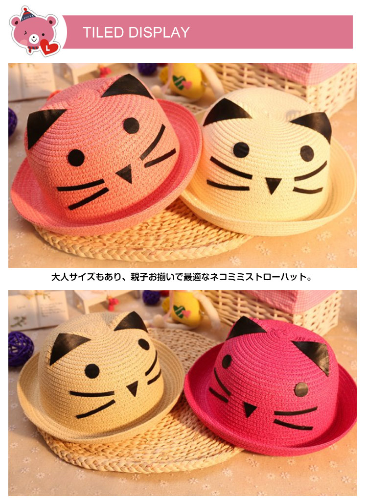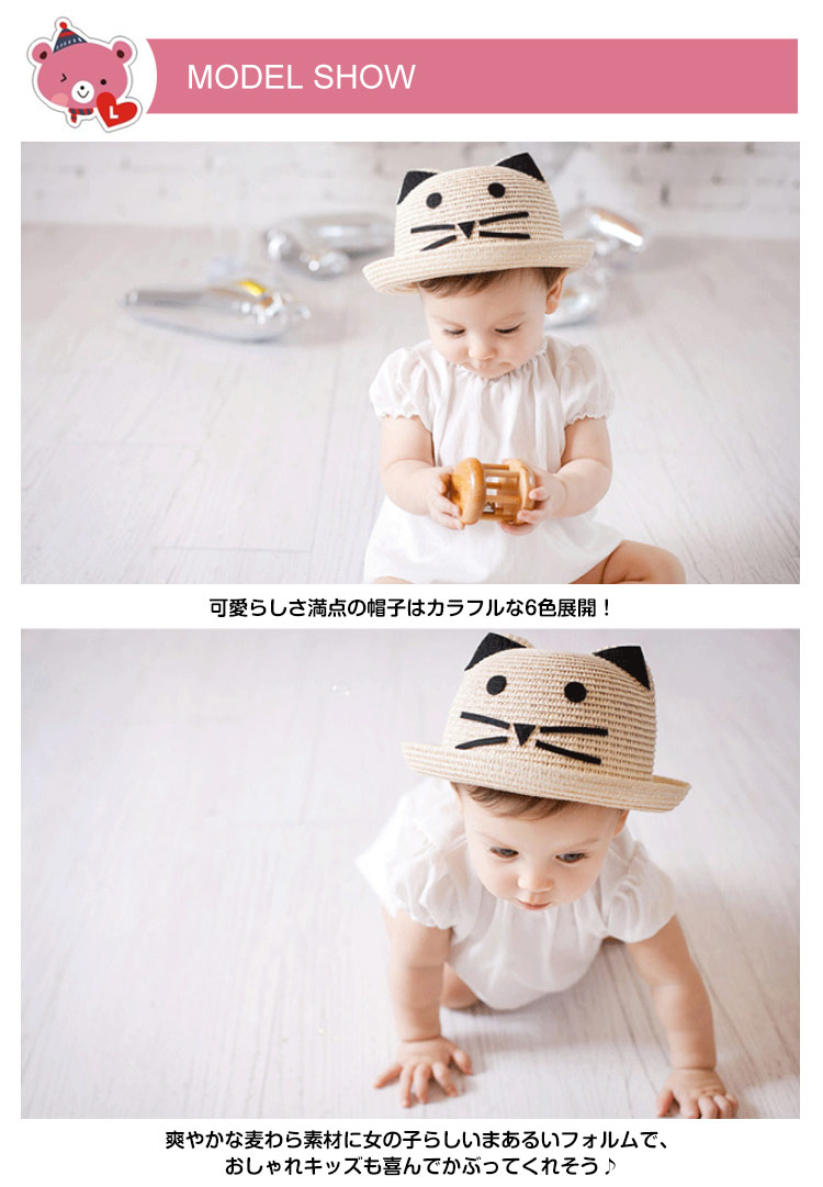 | お子様の紫外線対策に…♪ネコ顔をあしらった可愛い子供用麦わら帽子。可愛らしさ満点の帽子はカラフルな6色展開!爽やかな麦わら素材に女の子らしいまあるいフォルムで、おしゃれキッズも喜んでかぶってくれそう♪さらに、あご紐付きで元気なお子様にも風の強い日でも安心です。大人サイズもあり、親子お揃いで最適なネコミミストローハット。 | |