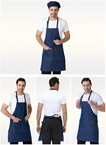 Bib Apron Cooking Kitchen Aprons Adjustable Waterproof Apron with Pockets