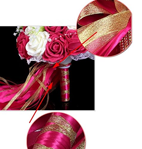 - Title : Hestian 10" Hot Pink and Ivory Roses with Pearls Chain , Beautiful Ribbon Bridal Wedding Bouquet Silk Rose Hand Tie (30pcs Roses)