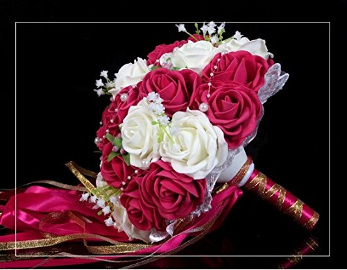 - Feature : Bridal Bouquet made with hot pink and white Roses with Pearls Chain , Beautiful Ribbon / 30pcs Bridal Bouquet 24-26cm W 33cm H / Silk flowers won't wilt in the heat or freeze in the cold. The consummate choice for all weather conditions / You can use flowers that may normally be out of season and there are also a wide variety of colors, above and beyond the limitations of mother nature. / The silk flowers available to us today are so glamorous and realistic you will be amazed. We think that many of the flowers are even more vibrant and beautiful that their fresh counterparts.