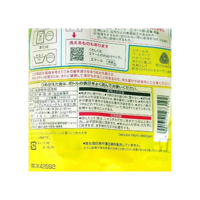원본상품명: 花王 Kao エマ?ル おしゃれ着用洗? つめかえ用 1400ml×4本