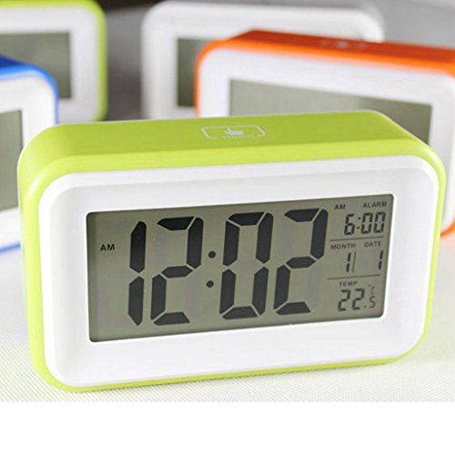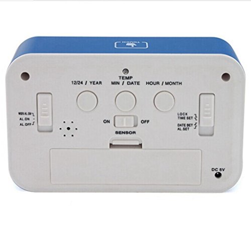 - Title : ESH Easy Setting Silent Digital 6" LED ABS Smart Alarm Digital Desktop Clock with Date and Temperature Display, Repeating Snooze, Light-activated Sensor Light and Touch-activated Nightlight- Batteries (Include 2GEN Clock: alarm for daily/weekdays Blue)
