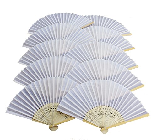 IGBBLOVE Silk Folding Fan Wedding Party Favor fan- 10 pack (White)