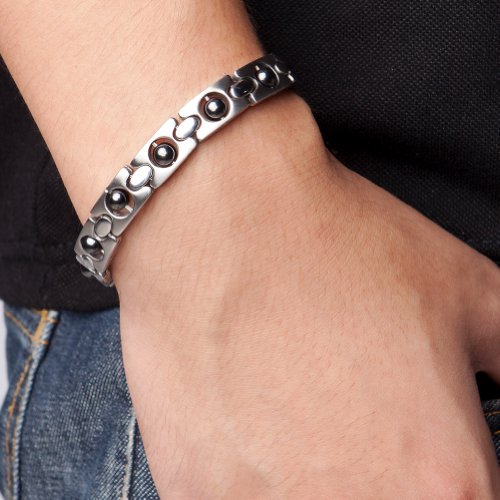 -. Feature : Titanium Magnetic Power Ionic Bracelet Wristband/004 / - Reduce fatigue and tension and thus enhance the ability to perform at optimum level / - Improve blood circulation / - Alleviate Discomfort and improve sleep / - Material: Titanium,316 Stainless Steel,10x500 Guass Magnetic Balls