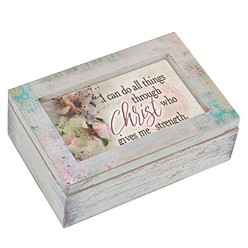 Do All Things Through Christ Distressed Wood Petite Decoupage Music Box Plays How Great Thou Art