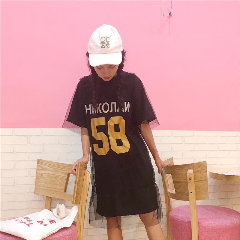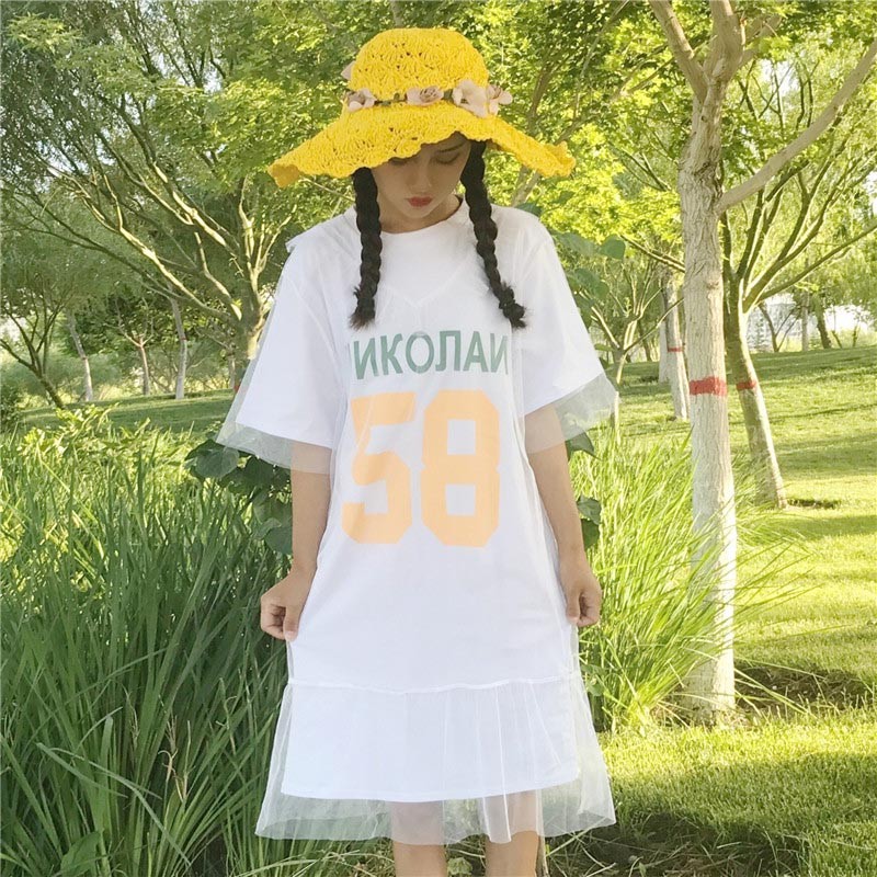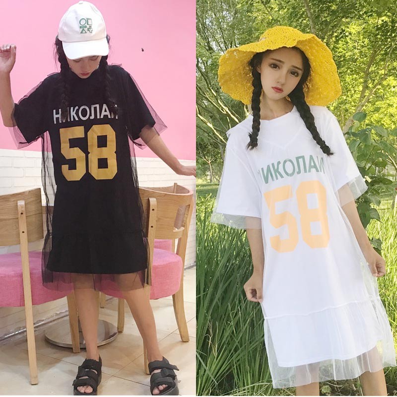 Tワンピはナンバー入りのスポーツカジュアルでそこにレーシーメッシュをオン☆
