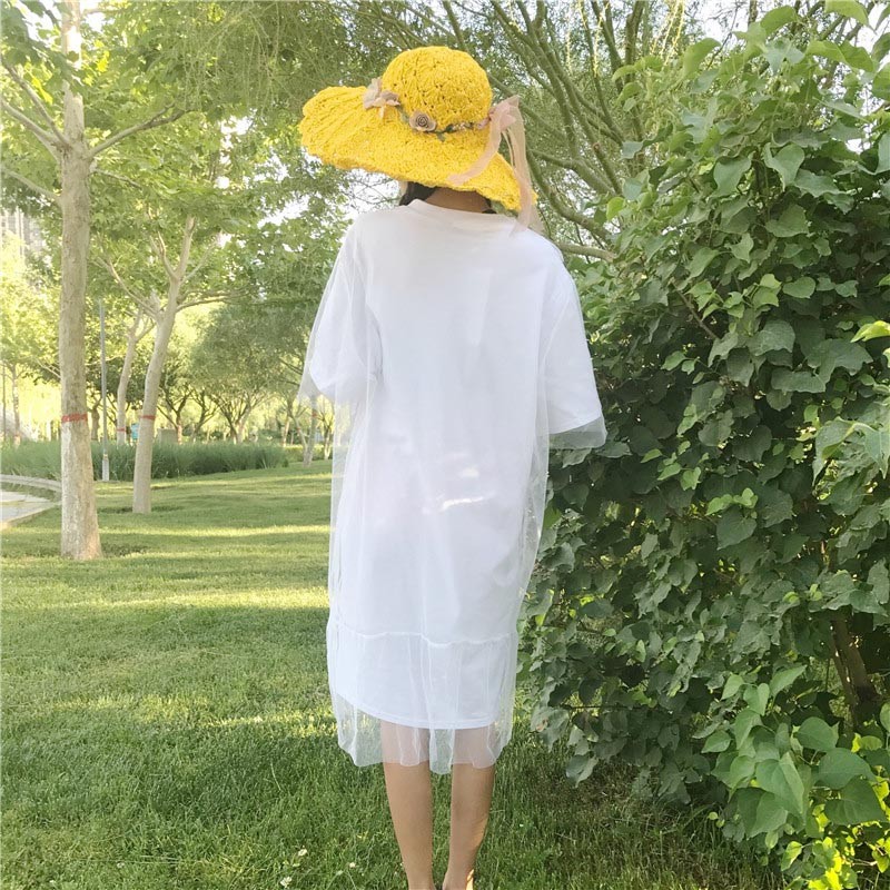 ブラックとホワイトのロングTワンピにメッシュワンピを重ねたセットアップ♪